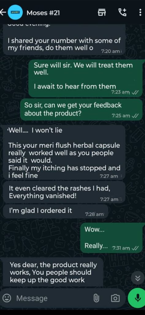 Join the hundreds of men and women in Ghana who have experienced a total cure using Meri Flush Capsule.