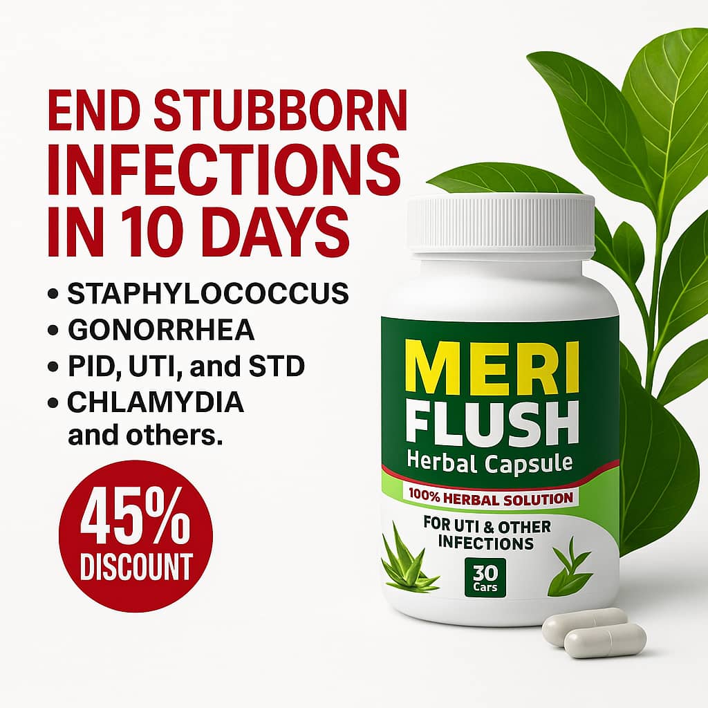 MERI FLUSH is a powerful herbal formula made from carefully selected natural ingredients that work deep inside the body to completely eliminate Staphylococcus aureus and other stubborn infections.